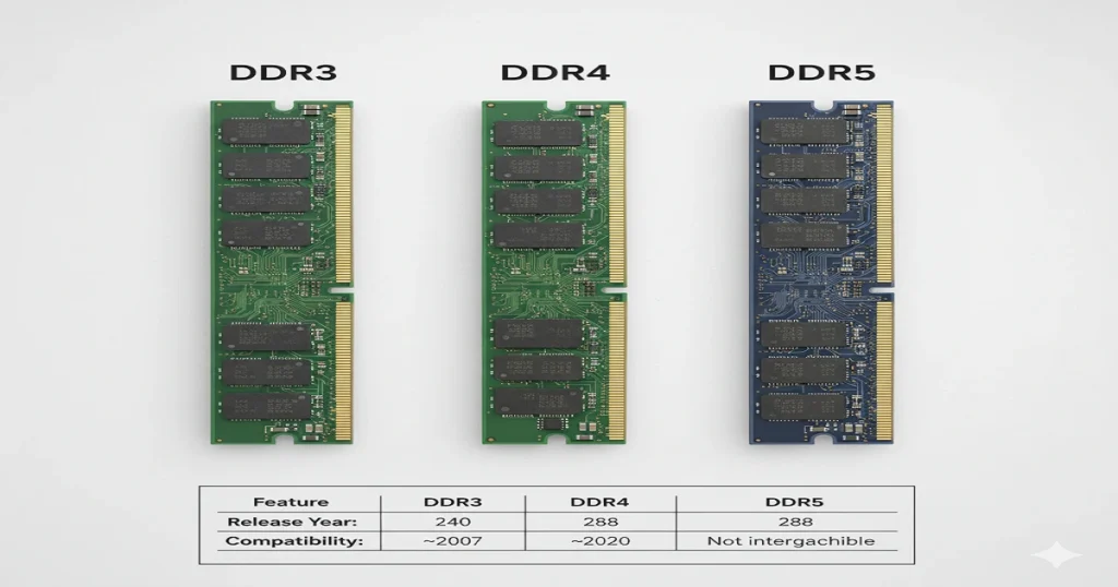 - Memory Type: DDR3, DDR4, or DDR5.