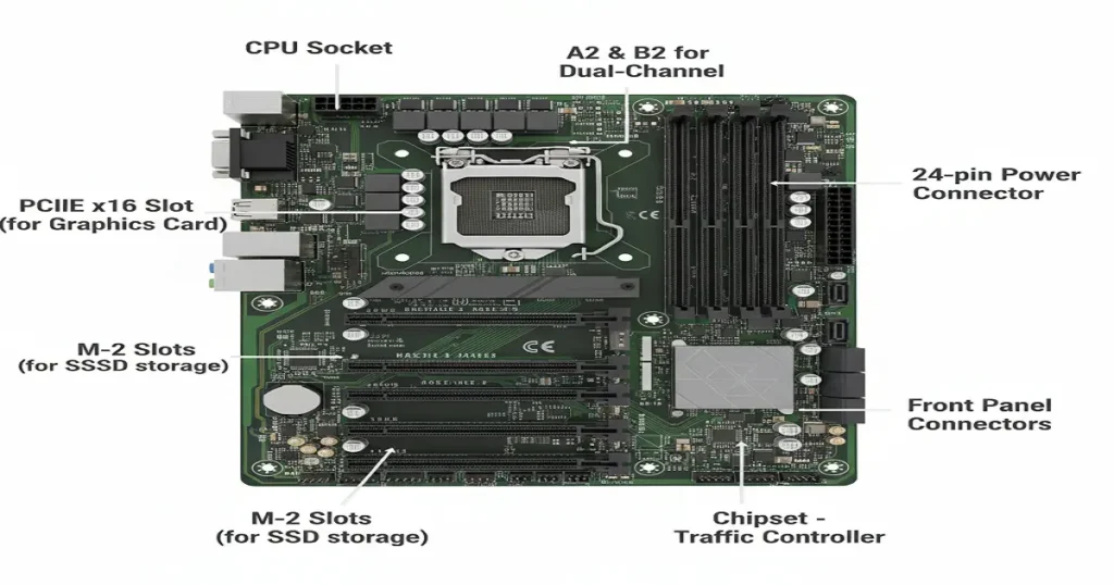 Real-World Example: When you game, your motherboard ensures your CPU talks to your GPU, loads textures from SSD to RAM, and delivers power where it’s needed – all simultaneously. This coordination happens millions of times per second behind the scenes.